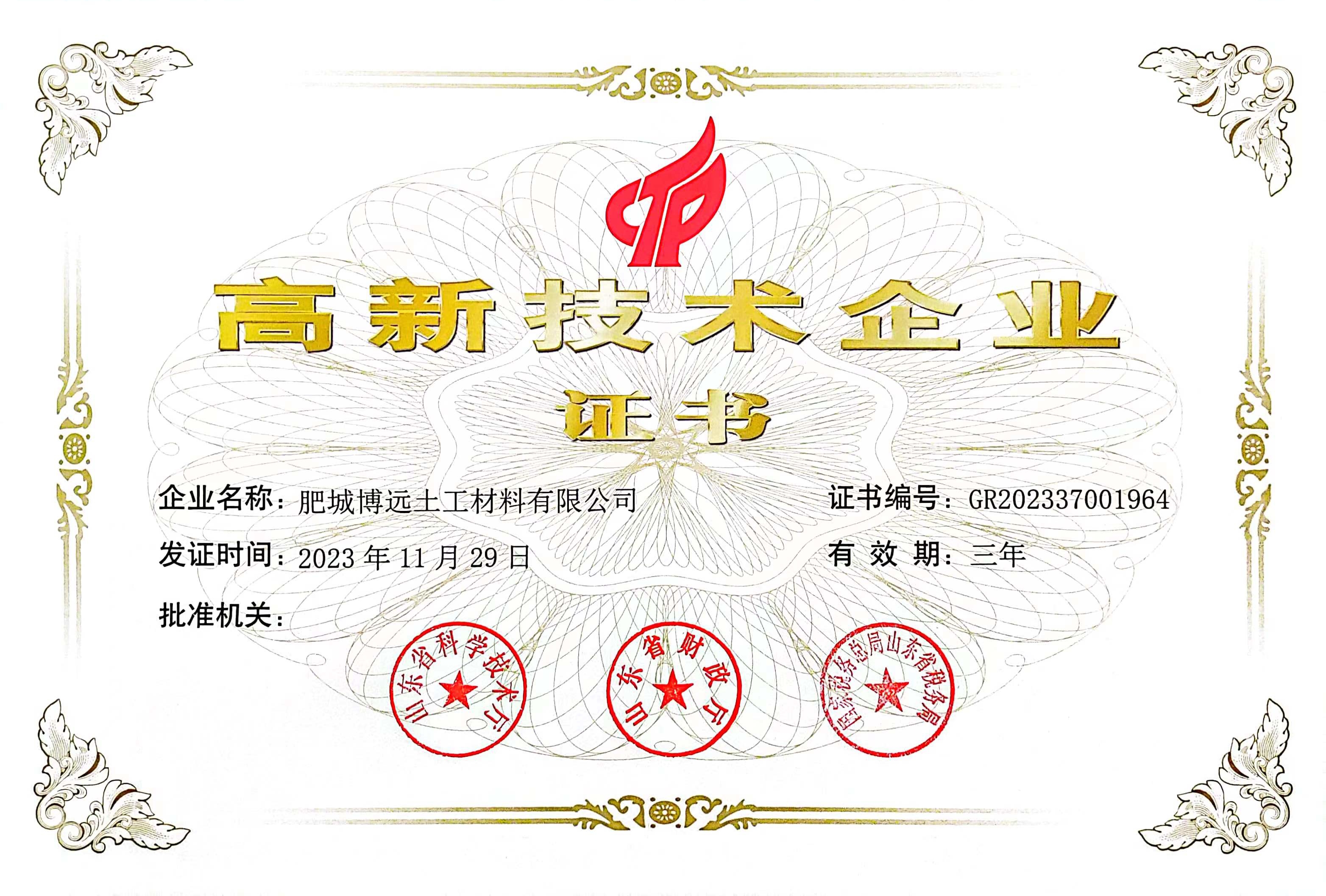 高新技术企业证书